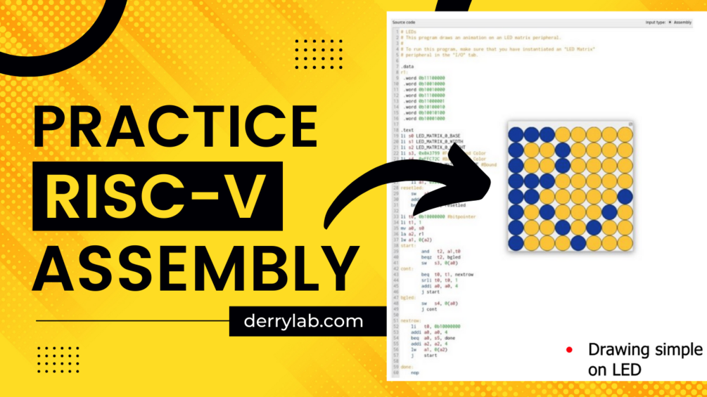 You will learn to program assembly from the simple loop into drawing RISC-V Logo on Dot matrix without even needing any RISC-V hardware!
